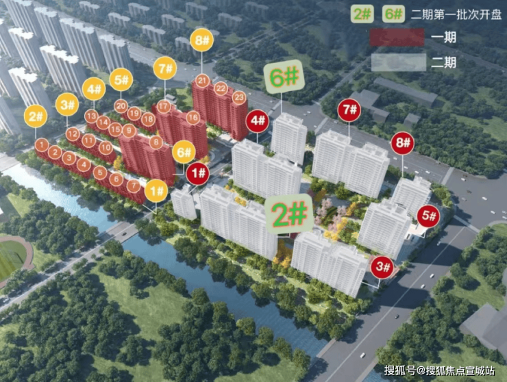 楼栋围绕中央景观园林错落布局,宽阔的栋距,最大化地保证了每一户的通风采光和观景视野!南侧天然水系环绕,因地制宜打造滨水空间,依水而居惬意舒适!